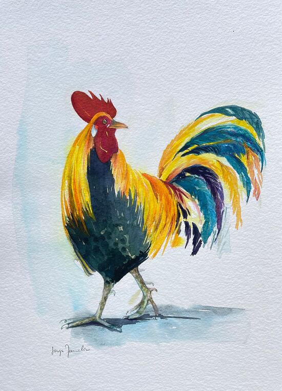 Der Hahn hüpft in dein Leben und bringt dir Freiheit, Erkenntnisse und Perspektivwechsel. Mit ihm wird alles leicht und unbeschwert.