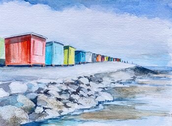 bunte Badebuden in Dagebüll am Meer