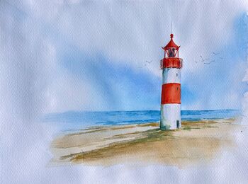 Leuchtturm im Wasser Aquarell