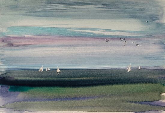 Aquarell - Skizze - Segelboote in der Sommernacht