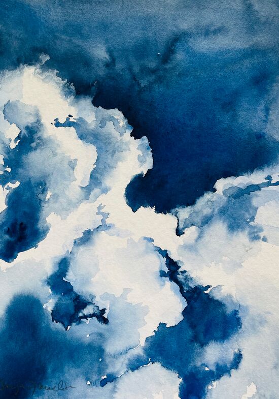 Aquarell - mit einer weißen Wolke am Nachthimmel