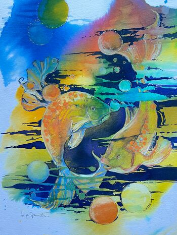 Blumen mit Vogel im Strauß Aquarell gemalt