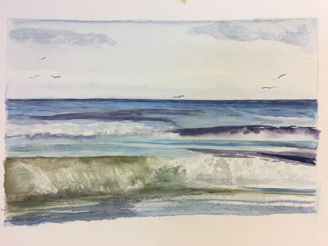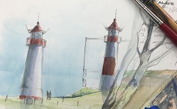 Es wird geskribbelt, gezeichnet, coloriert und natürlich auch aquarelliert. Im Landschaftsaquarell sind Farbschichten für das Darstellen von Meeresszenen und Wolken unerlässlich.