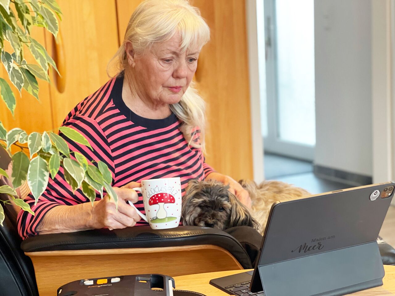 Der Kaffeeklatsch ist toll. So erhalte ich schnelle Informationen über die Akademie.malen-am-meer.de und kann auch Fragen stellen. Unklarheiten werden somit schnell aus dem Weg geräumt. Für den MalZOOM, der gleich danach ist, stelle ich unkompliziert meine Malwünsche auf die Liste. Alles einfacher als anfangs gedacht. Jetzt habe ich einen festen Termin im Monat. Ich freue mich schon immer darauf.